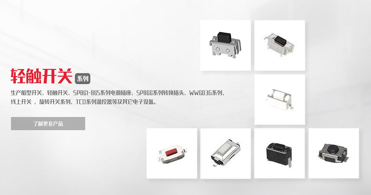 致力于船型開(kāi)關(guān)、負(fù)載開(kāi)關(guān)、輕觸開(kāi)關(guān)、微動(dòng)開(kāi)關(guān)等產(chǎn)品的研發(fā)、制造、銷售。